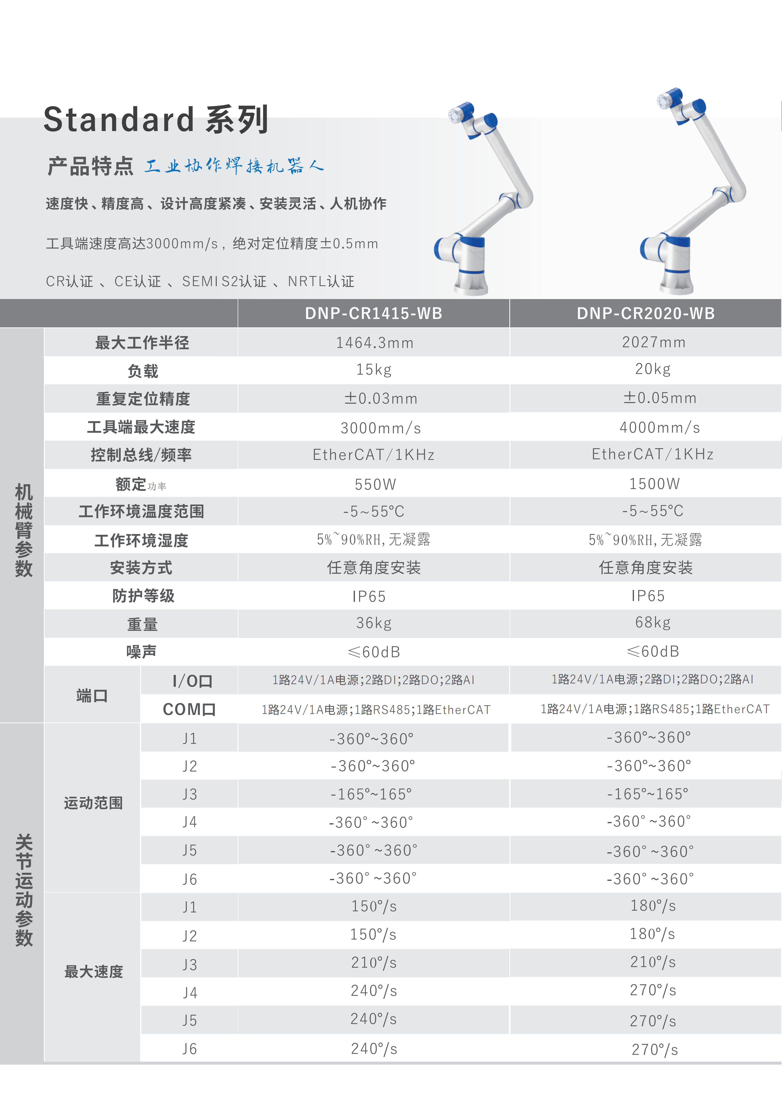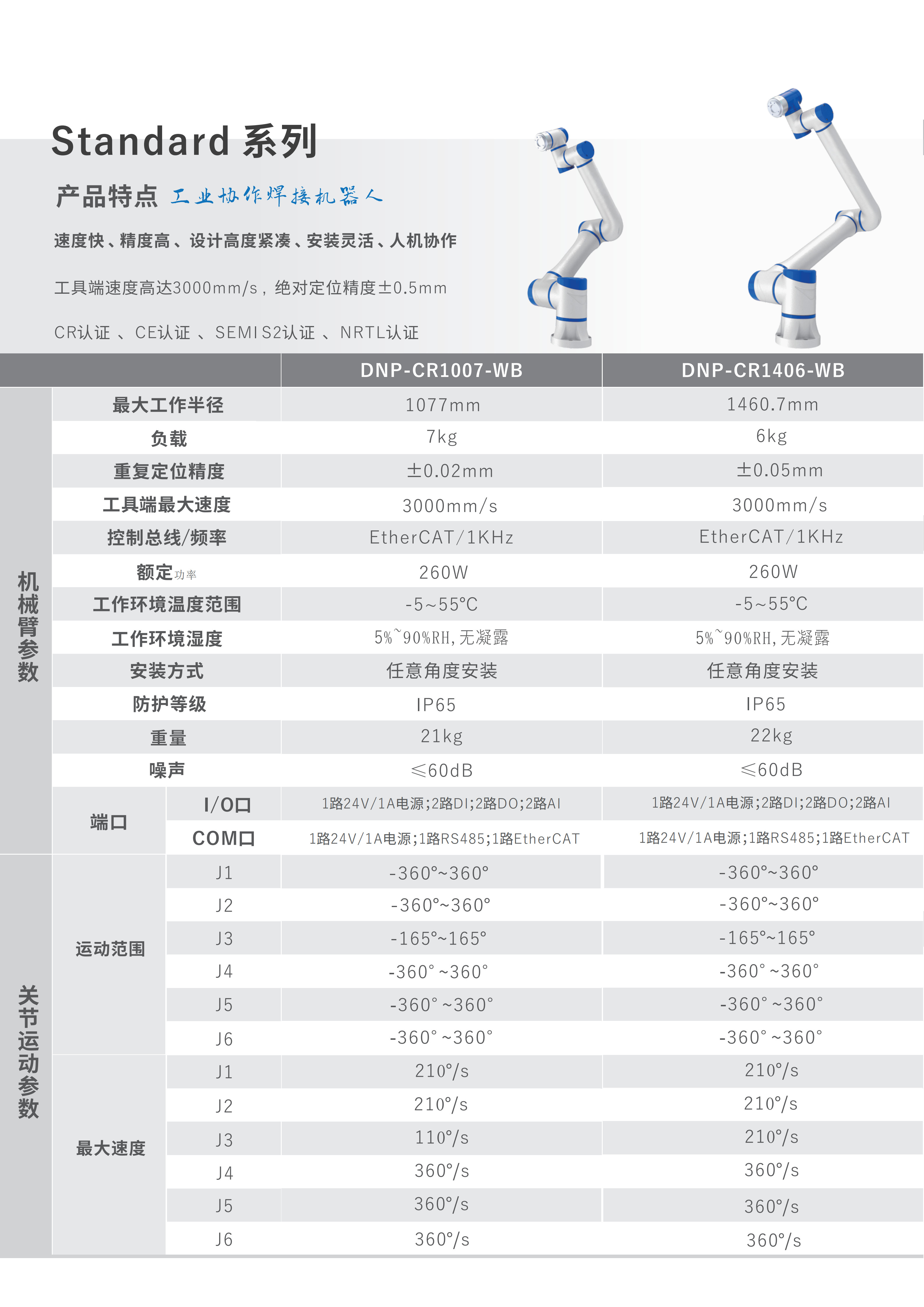 德诺普协作焊接机器人具备高速度、高精度等性能,有防护设计与友好操作体验,支持多轴联动及 2D/3D 视觉扩展,符合汽车行业质量标准,稳定可靠寿命长。